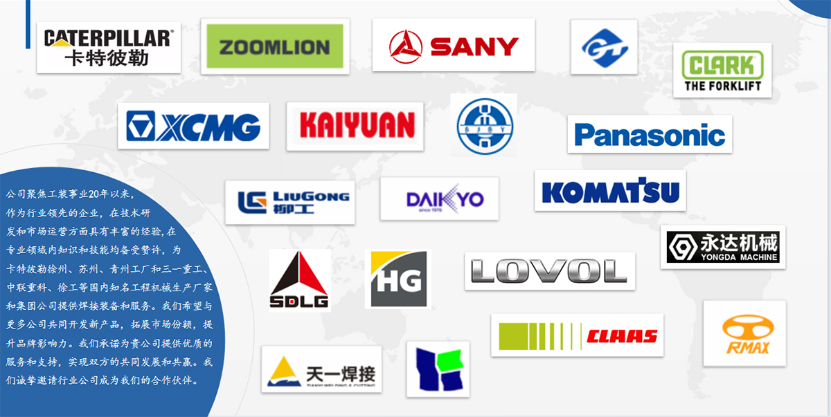 公司成立于2000年,注册资本1000余万元,生产面积约10000平。现有员工50余人,专业工装设计师15人。公司设运营管理部、制造部、技术质量部职能管理部门,是集ISO质量环境管理体系、安全标准化企业为一体的高新技术创新企业。 公司主要从事工程机械制造、焊接工装、焊接变位机、智能加工中心夹具、工业机器人为核心的非标工装、变位机、智能拼点、生产线集成配套、装配线、智能机器人工作站集成服务、非标专机设计制造,为客户提供一站式整体解决方案和交钥匙项目。公司聚焦工装事业20年以来来,专业性强,为卡特彼勒徐州、苏州、青州工厂和三一重工、中联重科、徐工等国内知名工程机械生产厂家和集团公司提供焊接装备和服务,目前已形成年产值3000余万元的生产能力。
